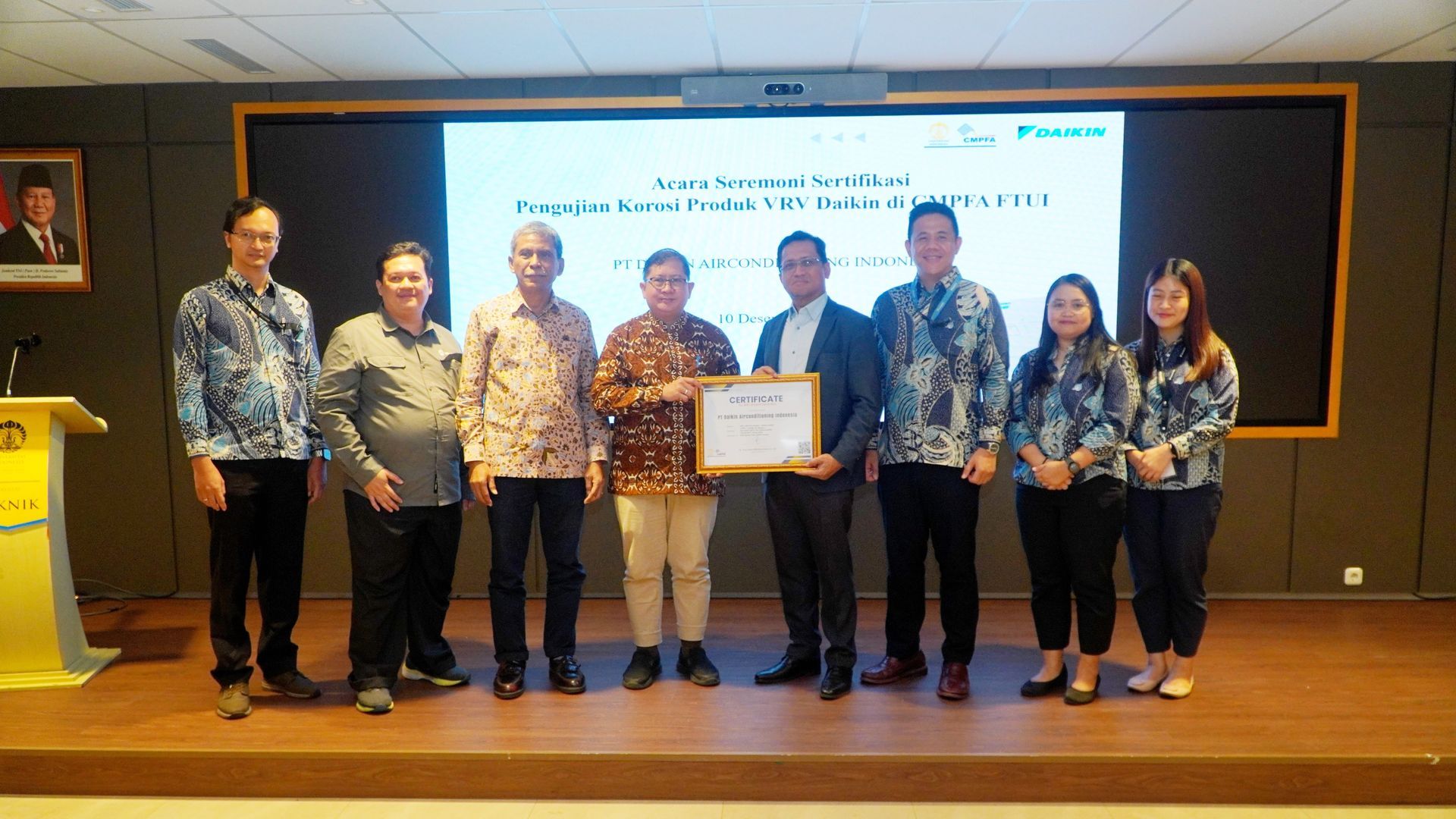 Jakarta, 10 Desember - Sistem tata udara terbaru DAIKIN untuk solusi bangunan komersial, VRV 6 X dan VRV 6 A, terbukti memiliki ketahanan korosi hingga 25 tahun. Bukan hanya pernyataan sepihak, hal ini didapatkan setelah melalui serangkaian pengujian pada Fakultas Teknik Universitas Indonesia. “ Keberhasilan ini menjadi bukti komitmen DAIKIN dalam menghadirkan produk yang tangguh untuk kondisi iklim tropis Indonesia. Lahir dari keseriusan inovasi berkelanjutan kami untuk menjadi semakin terdepan dalam solusi bagi kebutuhan tata udara masyarakat,” ujar Fawzie M Taib, Senior General Manager PT Daikin Airconditioning Indonesia. Disisi lain, menurutnya pula, hasil pengujian ini pun menjadi bagian pertanggungjawaban DAIKIN pada masyarakat terkait keunggulan produknya. “Membuatnya tak hanya klaim sepihak. Namun sebuah keunggulan yang benar-benar teruji dari lembaga independen,” ujar Fawzie M Taib lagi. Pernyataan ini tak lepas dari pilihan DAIKIN pada Center for Materials Processing and Failure Analysis (CMPFA) Universitas Indonesia , sebagai tempat pelaksanaan pengujian. Berada dibawah naungan Fakultas Teknik Universitas Indonesia, CMPFA menjadi Lembaga pengujian yang telah terakreditasi Komite Akreditasi Nasional (KAN). Berlangsung selama tiga bulan, pengujian di CMPFA khusus dilakukan pada dua komponen utama VRV 6 X dan VRV 6 A yaitu PFC dan Cross Fin. Dengan metode Salt Spray, pengujian dilaksanakan menggunakan standar internasional ASTM B117, JIS Z 2371, dan ISO 9227. Sepanjang pengujian yang dilakukan dalam chamber khusus, kedua komponen utama ini menjalani uji dibawah Neutral Salt Spray (NSS ) untuk mengetahui ketahanannya pada korosi. Pengamatan yang dilakukan tim penguji mendapatkan, kedua komponen PFC dan Cross Fin yang digunakan pada VRV 6 X dan VRV 6 A memiliki ketahanan pada korosi hingga 2,000 jam yang dilakukan dalam kondisi penyemprotan secara terus menerus sepanjang pengujian. Dari hasil inilah kemudian, dengan perbandingan pada kondisi nyata, VRV 6 X dan VRV 6 A memiliki ketahanan dari korosi hingga 25 tahun untuk kedua komponen utamanya ini. “Kami menyambut baik langkah DAIKIN yang melakukan pengujian ini. Menjadi bagian pertanggungjawaban pelaku industri dalam memberikan informasi yang sebenar-benarnya pada masyarakat,” ujar Dr. -Ing. Reza Miftahul Ulum, S.T., M.T. selaku Kepala CMPFA. Dengan masifnya upaya pemasaran dari berbagai pabrikan, menurutnya, pengujian pada lembaga independen dan terakreditasi menjadi penting sebagai upaya menciptakan komunikasi yang bertanggung jawab pada masyarakat.