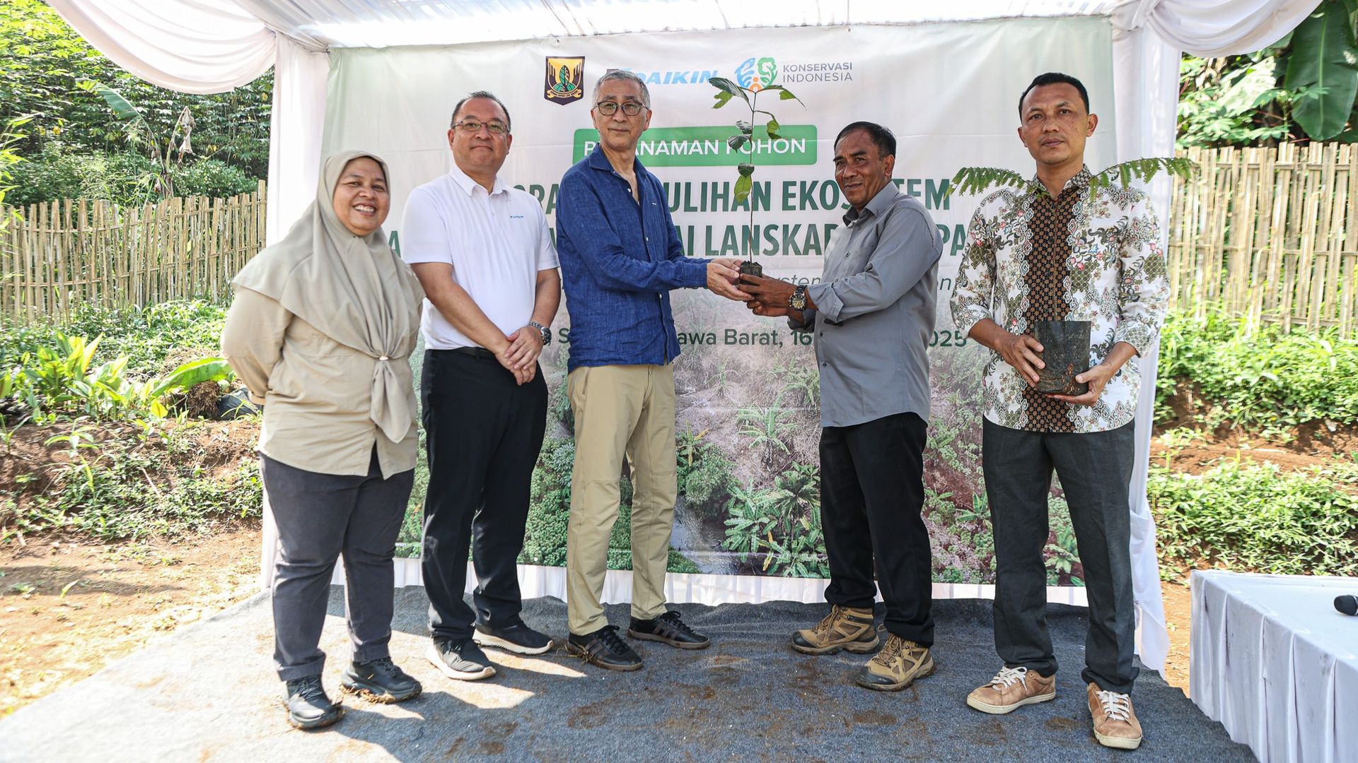 Sukabumi, 16 Oktober 2025 – Konservasi Indonesia bersama masyarakat, pemerintah, dan mitra strategis melanjutkan dukungan upaya pemulihan ekosistem di daerah aliran sungai (DAS) Lanskap Gedepahala (Gunung Gede Pangarango dan Halimun Salak), Jawa Barat. Program ini merupakan kelanjutan dari program Green Wall, yang sejak 2008 hingga 2022 telah berhasil memulihkan 300 hektare area penyangga Taman Nasional Gunung Gede Pangrango (TNGGP) dalam wadah kolaborasi antara Kementerian Kehutanan, Conservation International, Konservasi Indonesia, serta Daikin Industries. Melanjutkan keberhasilan tersebut, program pemulihan ekosistem antara Pemerintah, Indonesia, Daikin Industries, dan Konservasi Indonesia (KI), diperkuat kembali dengan kegiatan penanaman pohon bersama masyarakat Desa Munjul, Kecamatan Ciambar, Kabupaten Sukabumi, Jawa Barat. Desa Munjul merupakan daerah penyangga TNGGP yang memiliki nilai strategis dalam pemulihan fungsi ekosistem. Melalui kajian yang dilakukan oleh Konservasi Indonesia, ekosistem di keempat DAS Jawa Barat telah mengalami degradasi seluas 632.644 hektare dan membutuhkan upaya restorasi berkelanjutan. Sejak 2008 hingga saat ini, Pemerintah Indonesia bersama Konservasi Indonesia dan para mitra, termasuk Daikin Industries, telah memulihkan lahan terdegradasi seluas 385 hektare. Ke depan, inisiatif ini akan memperluas lagi area restorasi seluas 500 hektare, dengan tujuan memperkuat ketahanan ekologi, air, dan iklim serta ekonomi masyarakat di Jawa Barat. Vice President Program Konservasi Indonesia, Fitri Hasibuan, menyebut kegiatan ini sebagai bagian dari komitmen jangka panjang yang akan memfasilitasi pemulihan ekosistem di desa penyangga TNGGP. “Bersama seluruh pihak terkait, KI akan memfasilitasi pemulihan ekosistem melalui restorasi seluas 500 hektare lahan tergedradasi di desa penyangga TNGGP hingga 10 tahun mendatang. Kegiatan ini tidak hanya berfokus pada pemulihan ekosistem bersama masyarakat, tetapi juga mencakup membangun kesadaran akan pentingnya alam kepada pemuda dan pelajar selaku agen perubahan. Selain itu, KI juga mendukung penguatan tata kelola melalui fasilitasi penyusunan peta jalan restorasi empat DAS utama Jawa Barat, yaitu Ciliwung, Cimandiri, Cisadane, dan Citarum, yang menopang kehidupan lebih dari 40 juta penduduk Jawa Barat dan DKI Jakarta,” ujar Fitri. Dia menambahkan, dukungan berkelanjutan yang diberikan oleh Daikin Industries untuk program Green Wall menunjukkan kolaborasi jangka panjang dalam rangka memulihkan ekosistem sekaligus memberi manfaat untuk masyarakat. Keberlanjutan upaya konservasi ini, kata dia, akan semakin memperkuat upaya kita menjaga fungsi ekosistem hulu-hilir serta mendukung pencapaian tujuan pembangunan berkelanjutan, target nasional perubahan iklim dan keanekaragaman hayati. “Sebagai mitra implementasi, Konservasi Indonesia memastikan bahwa proses restorasi berjalan berbasis sains, inklusif, dan melibatkan masyarakat serta generasi muda. Inisiatif ini tidak hanya melestarikan keanekaragaman hayati, tetapi juga membangun ketahanan sosial-ekonomi di tingkat lokal. Restorasi ini merupakan investasi jangka panjang untuk ketahanan ekologi, air, dan iklim, sekaligus membuka ruang partisipasi aktif masyarakat dan generasi muda. Kami percaya, keberhasilan konservasi hanya dapat dicapai melalui kolaborasi multipihak yang berkesinambungan” tambah Fitri. General Manager CSR Division Head, Daikin Industries, Toshimitsu Harada, menegaskan komitmen perusahaan dalam mendukung inisiatif ini. “Daikin Industries menyampaikan apresiasi yang sebesar-besarnya kepada Kementerian Kehutanan Indonesia, tim Conservation International dan Konservasi Indonesia, serta seluruh masyarakat yang telah melestarikan ekosistem hutan ini. Melalui dukungan yang kini diperpanjang hingga 10 tahun mendatang ini, Daikin Industries berkomitmen untuk terus menjaga dan mengembangkan proyek konservasi ini sebagai bagian dari dedikasi kami terhadap keberlanjutan lingkungan dan masa depan yang lebih hijau.” Harada menilai, Pulau Jawa merupakan salah satu pusat keanekaragaman hayati dunia. Daikin Industries berharap keberhasilan proyek konservasi di Indonesia dapat menjadi contoh yang menginspirasi dan diperluas ke berbagai negara lain, sebagai wujud nyata kontribusi Indonesia bagi pelestarian lingkungan global. Di tempat yang sama, Camat Ciambar, Arif Solihin, S.Ip, M.Si, menyampaikan dukungan masyarakat terhadap kegiatan ini. “Kami menyambut baik kolaborasi ini karena manfaatnya langsung dirasakan masyarakat, mulai dari perbaikan sumber air, peluang ekonomi, hingga pendidikan lingkungan bagi anak-anak kami. Kecamatan Ciambar bersama masyarakat Desa Munjul siap menjadi bagian dari upaya restorasi, karena kami percaya hutan yang sehat adalah warisan berharga bagi generasi mendatang,” ungkapnya.