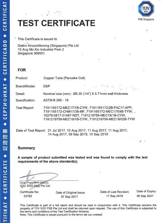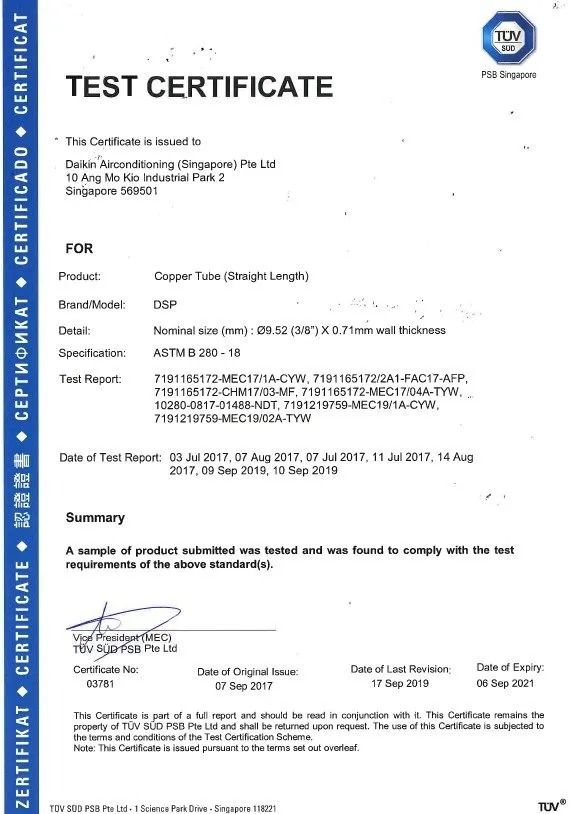 DSP Pancake dan Straight diproduksi dengan standar kualitas yang sangat ketat, diproduksi sesuai dengan ASTM B280 dengan tujuan untuk digunakan dalam sambungan, perbaikan atau pergantian unit pendingin udara atau pendingin di lapangan. Untuk memastikan kinerja ac yang sangat baik, tembaga katoda kualitas tertinggi pipa ini menggunakan 99,9% Cu. Ditawarkan dengan berbagai macam ukuran.