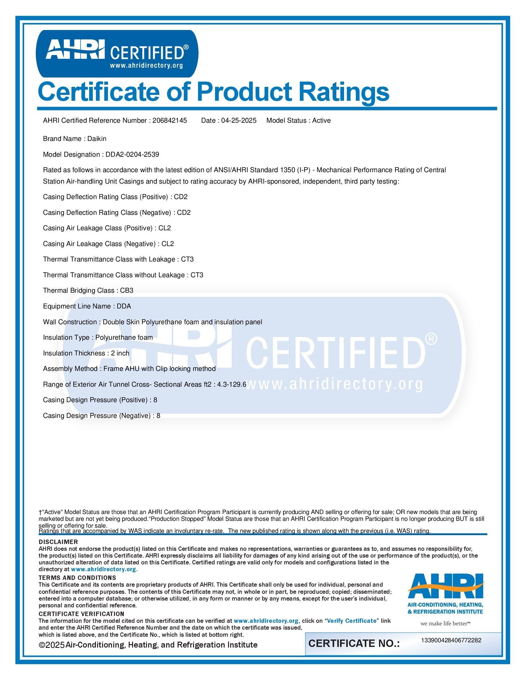 Sertifikat AHRI (Airconditioning, Heating & Refrigeration Institute)