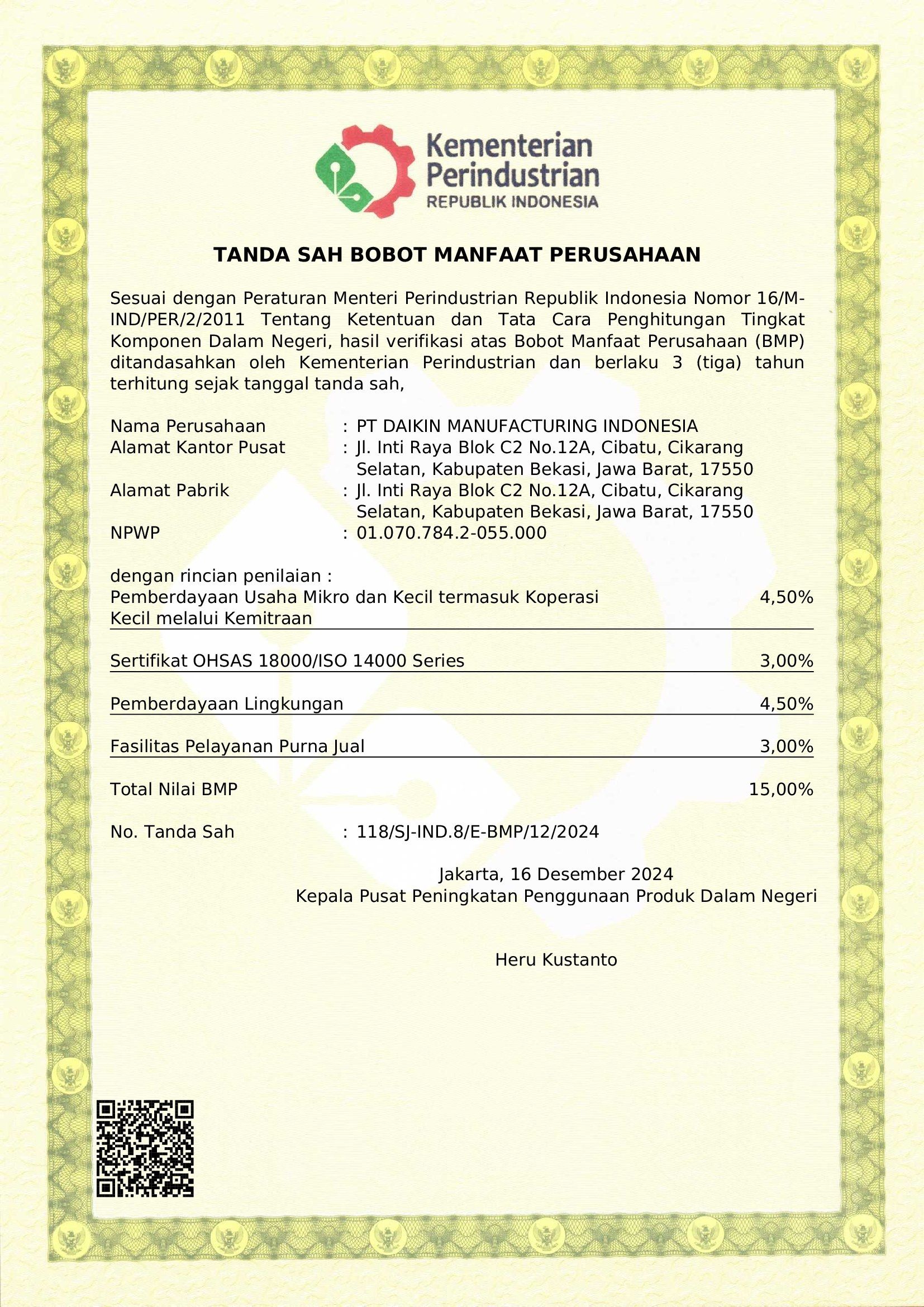 Sertifikat BMP (Bobot Manfaat Perusahaan) 2024