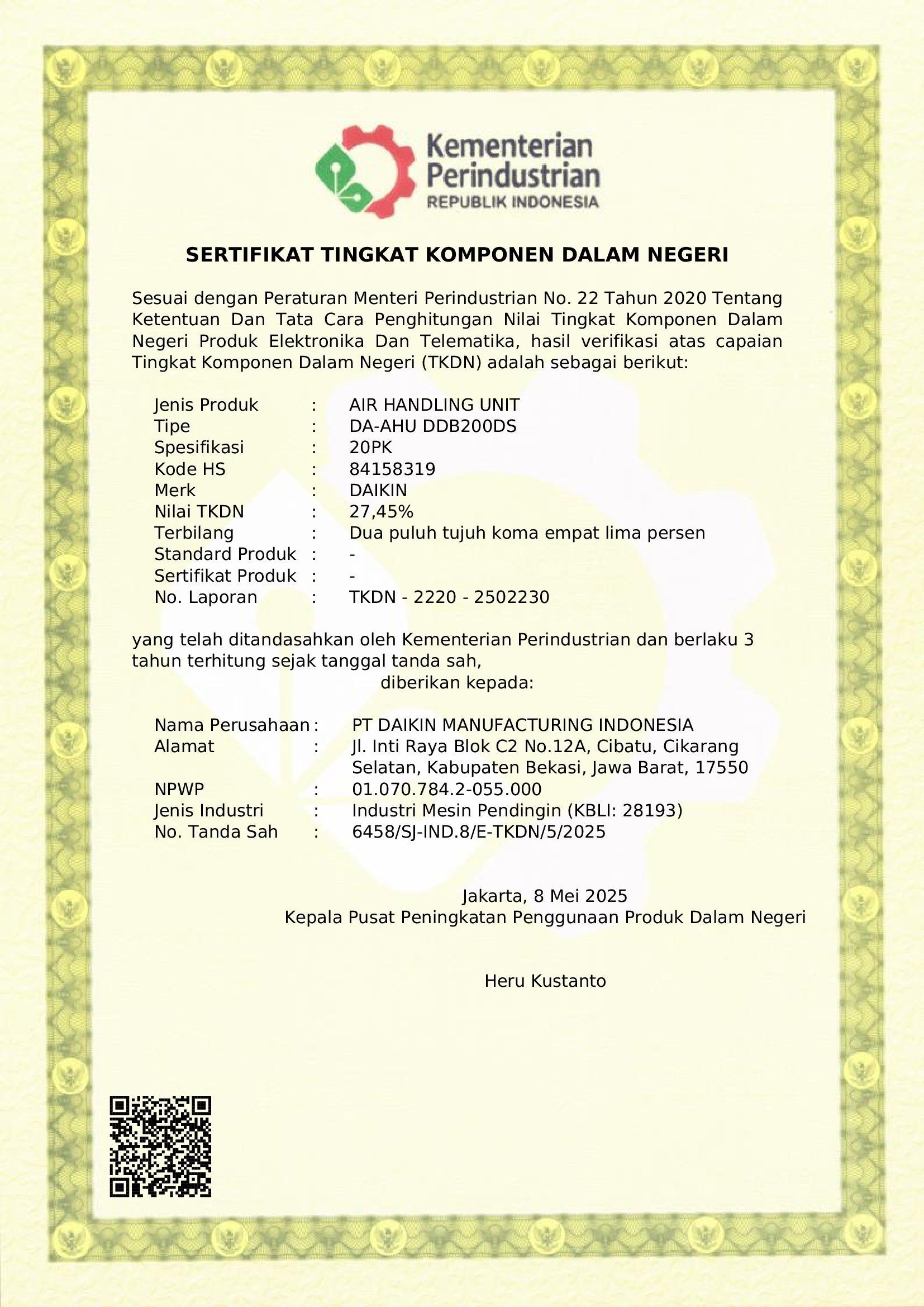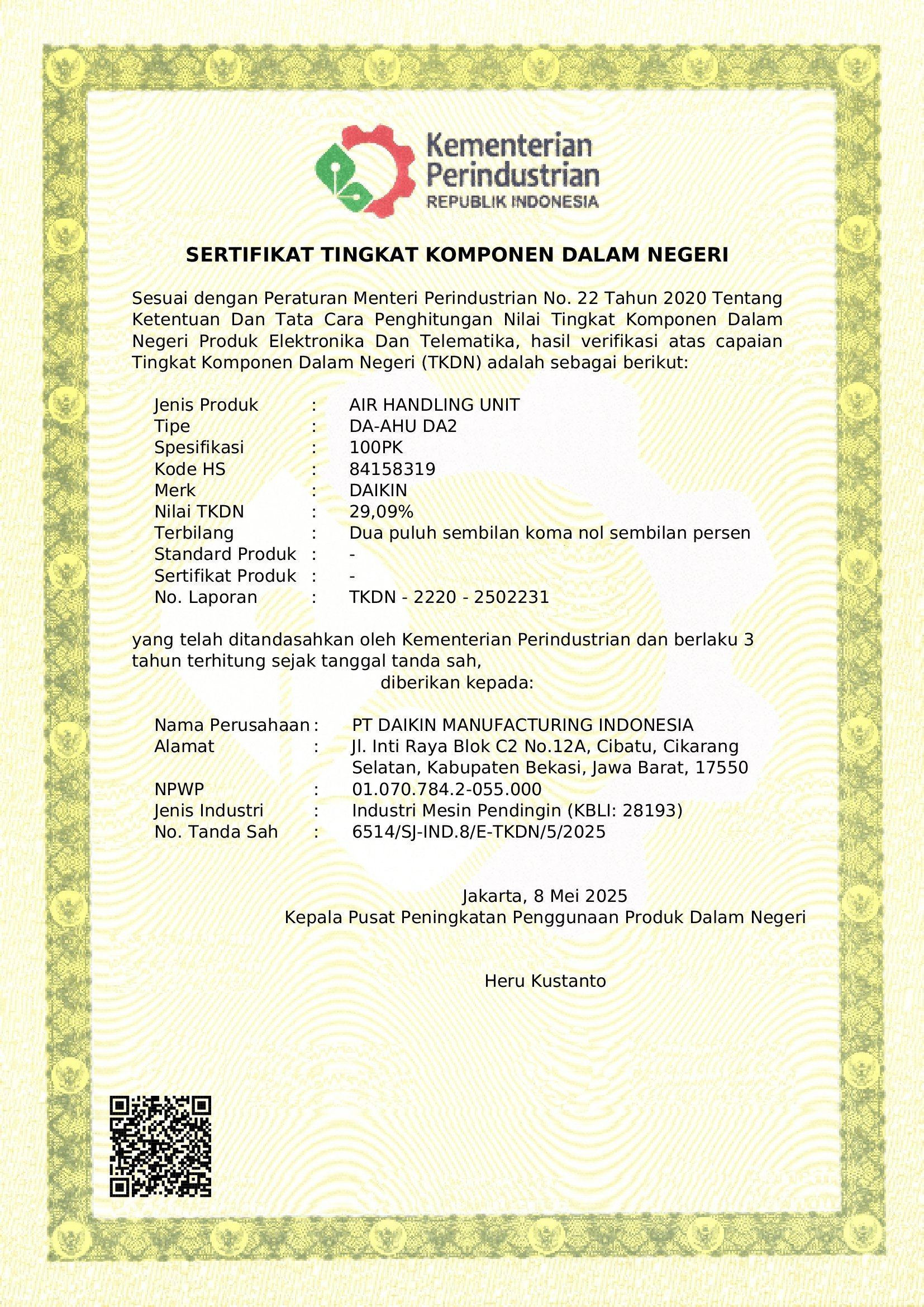 Sertifikat Tingkat Komponen Dalam Negeri (TKDN)